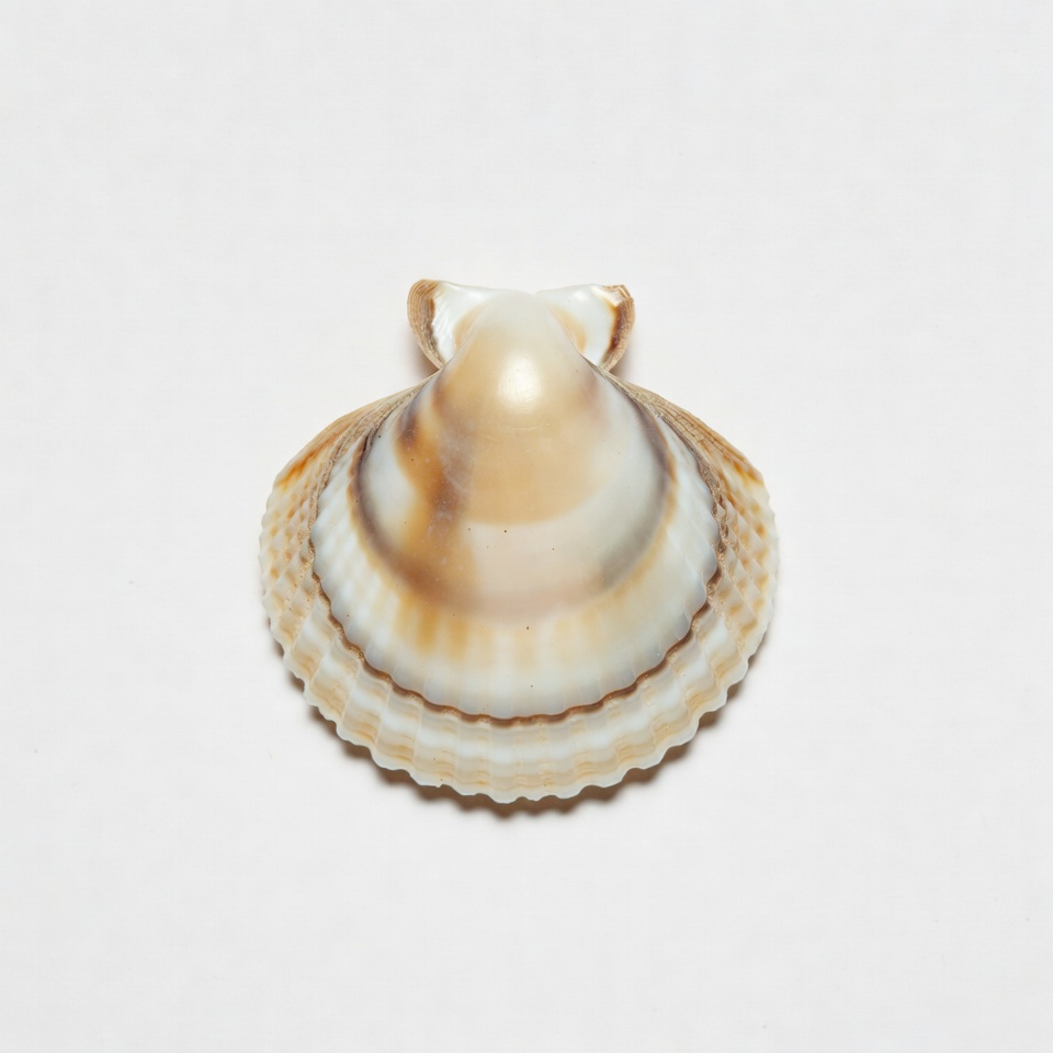 beach shell, bivalve, brown shell, cream shell, fan shell, isolated shell, marine shell, nature, ocean, ridged shell, sea life, seashell, shell, textured shell, white background, scallop shell