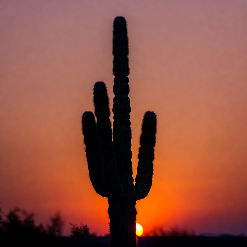 Silhouetted Saguaro Cactus at Sunset