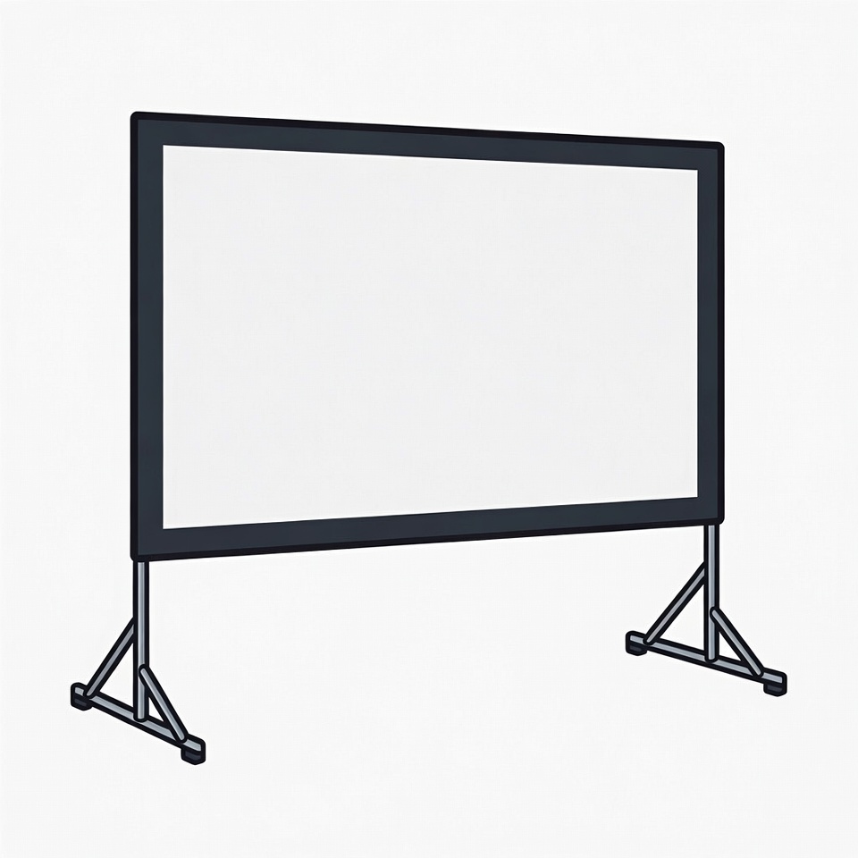 blank screen, clipart, display screen, illustration, isolated background, line art, metal stand, portable screen, rectangular screen, screen stand, tripod stand, vector graphic, projection screen