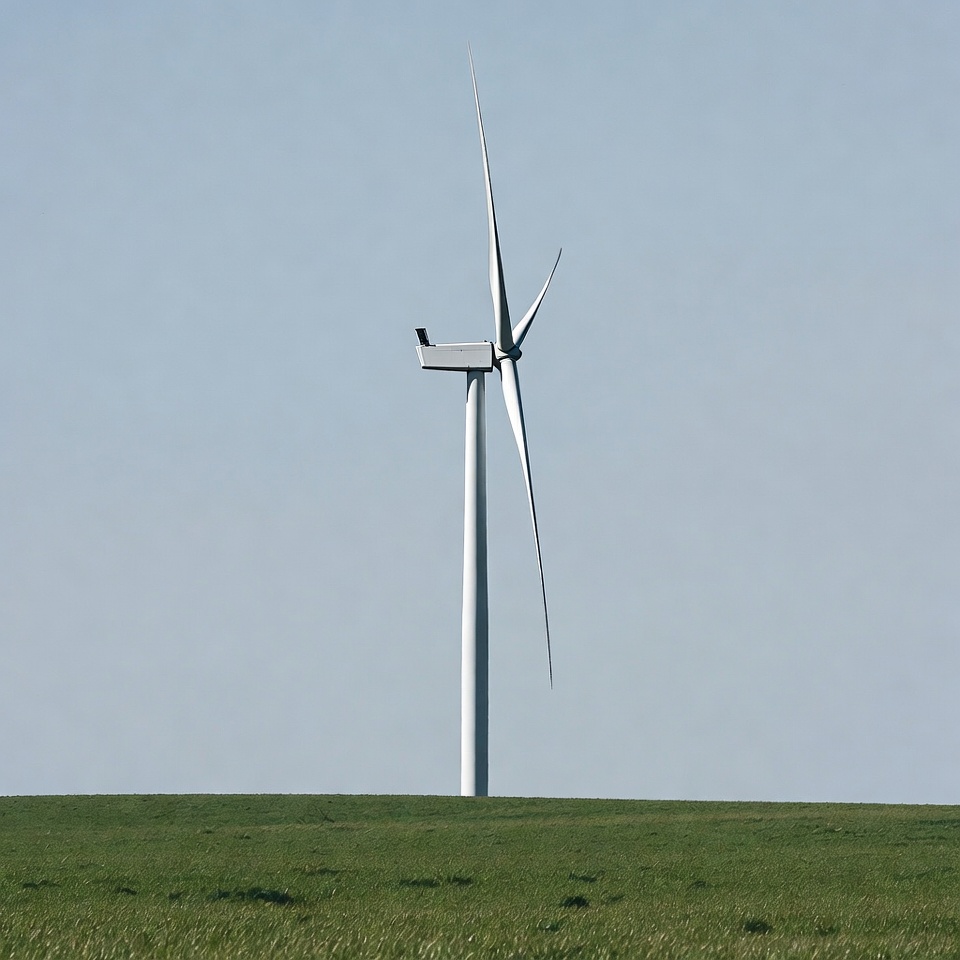 blades, blue sky, clean energy, countryside, environment, field, grass, green field, isolated background, modern turbine, nature, outdoor, power generation, renewable energy, sky, turbine, white tower, wind power, windmill, wind turbine