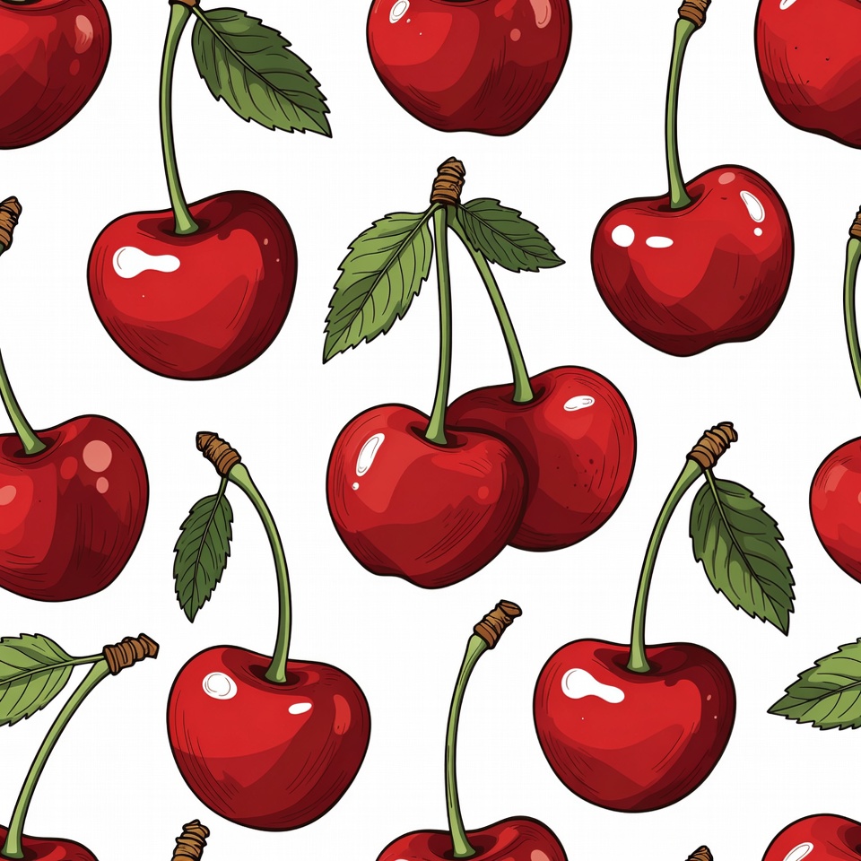 berry pattern, cherry art, cherry branches, cherry cluster, cherry design, cherry fruit, cherry graphic, cherry pattern, cherry stems, cherry wallpaper, clipart cherries, fresh cherries, fruit graphic, fruit illustration, fruit pattern, glossy cherries, green leaves, isolated cherries, red cherries, red fruit, repeating cherries, ripe cherries, seamless pattern, vector cherries, white background, cherries