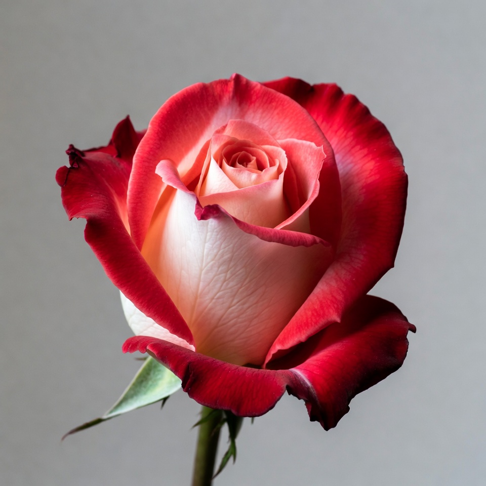 bicolor rose, bloom, botany, close-up, floral, flower, garden flower, hybrid tea rose, isolated background, leaves, nature, petals, pink rose, romantic flower, stem, white rose, rose