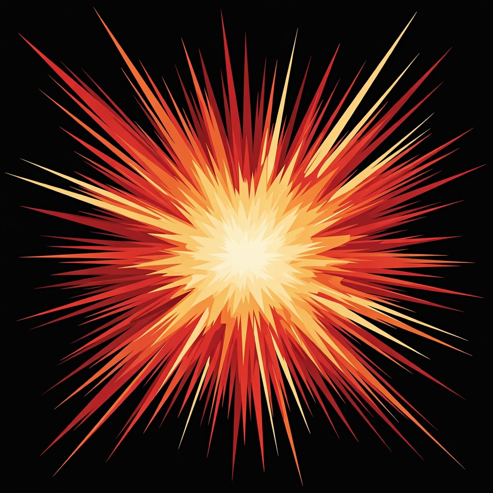 black background, bright explosion, clipart, dynamic rays, energy burst, explosion, fiery burst, firework effect, graphic design, illustration, isolated background, light rays, orange rays, radial burst, radiating light, red rays, sunburst, vector art, yellow center, starburst