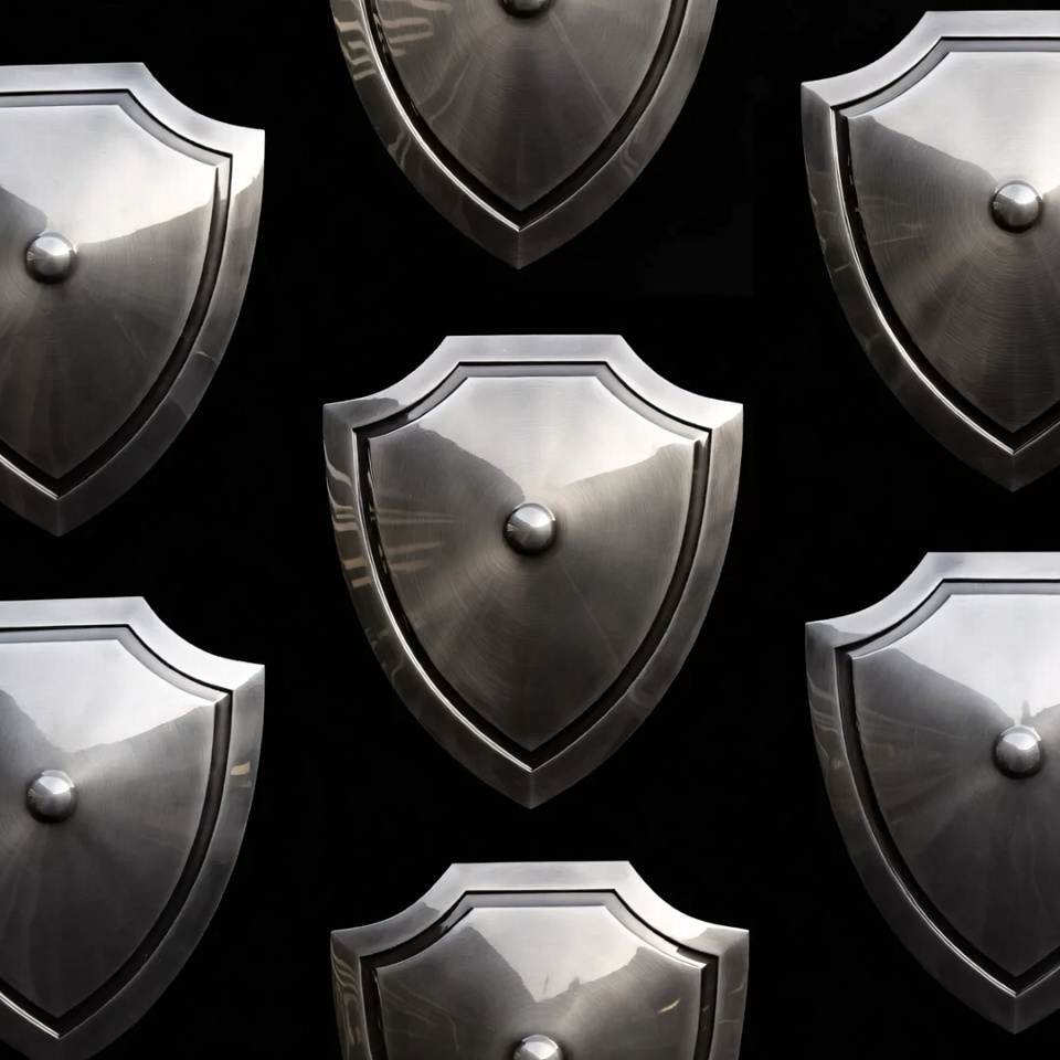 Shiny Metal Shields on Black Background