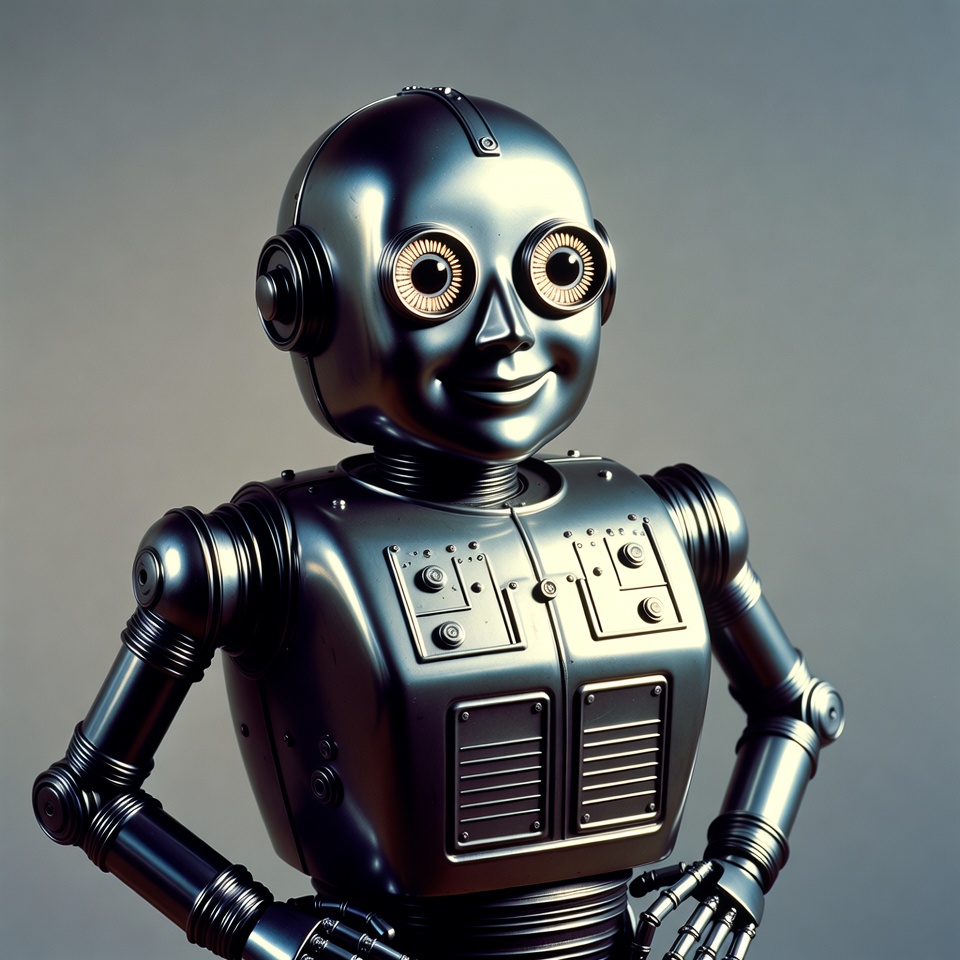 Shiny silver robot posing confidently