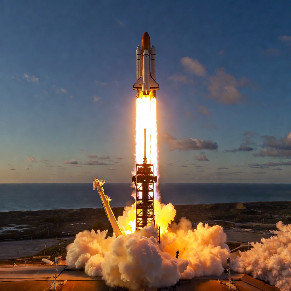 Space Shuttle Launching at Dusk