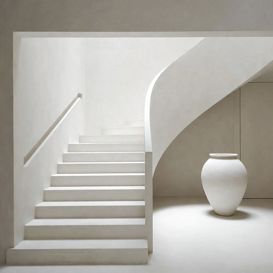 White Spiral Staircase with Ceramic Vase