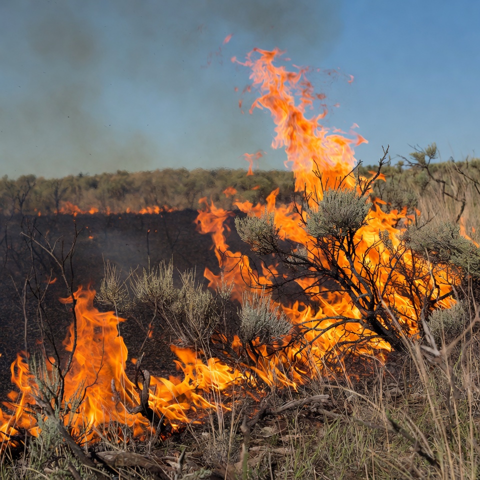 arid landscape, black smoke, blaze, blue sky, brush fire, burning, bushfire, charred ground, dry grass, field fire, fire, fire spread, flames, grass fire, grassland, inferno, open field, orange flames, sagebrush, shrub fire, smoke, smoky sky, wildfire scene, wildfire