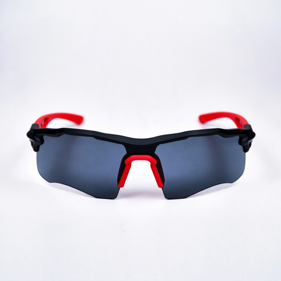 black sunglasses, cycling glasses, eyewear, fashion accessory, gray lenses, isolated background, protective eyewear, red accents, running sunglasses, sport sunglasses, sports gear, stylish sunglasses, tinted lenses, wraparound sunglasses, sunglasses