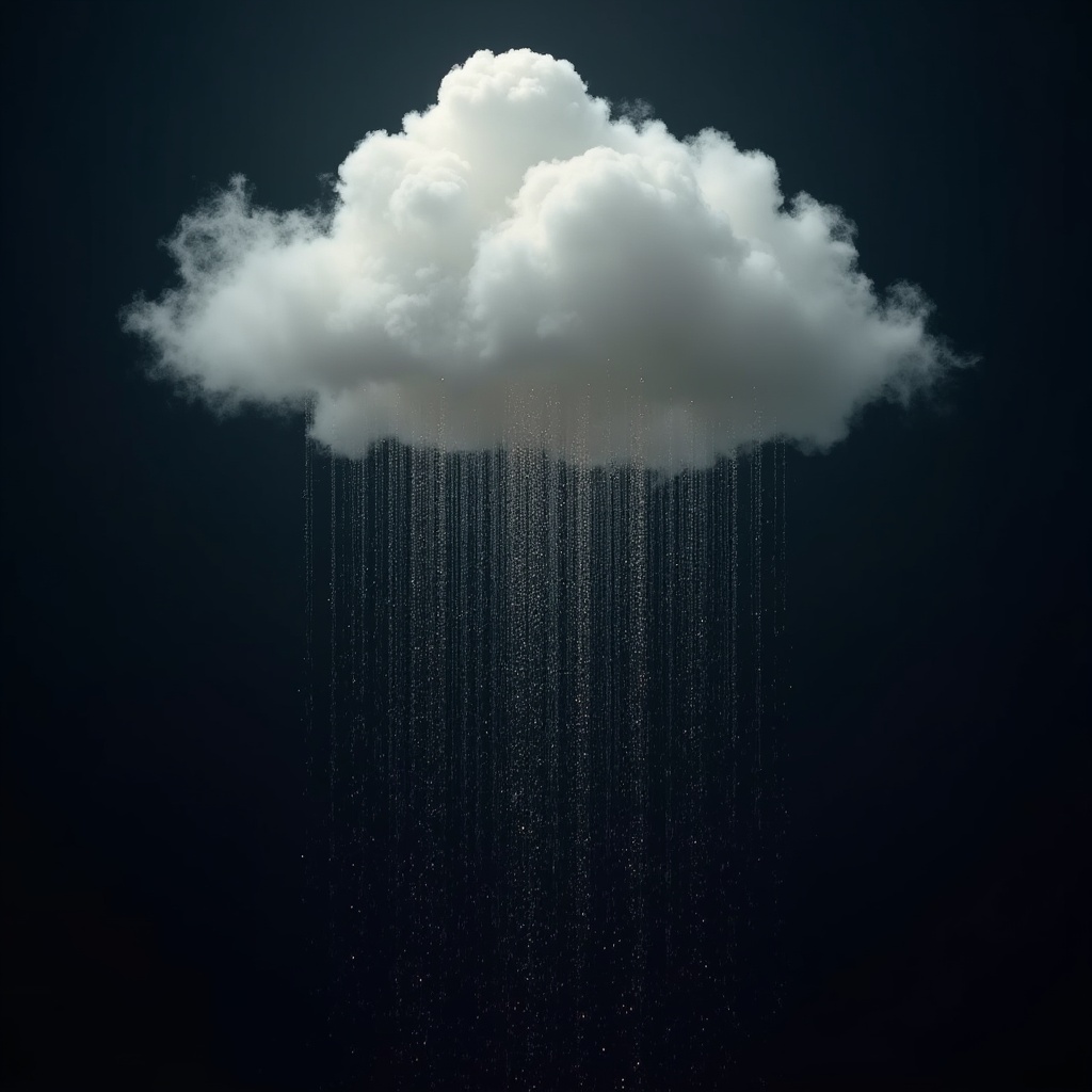 Fluffy Cloud Raining on Dark Background