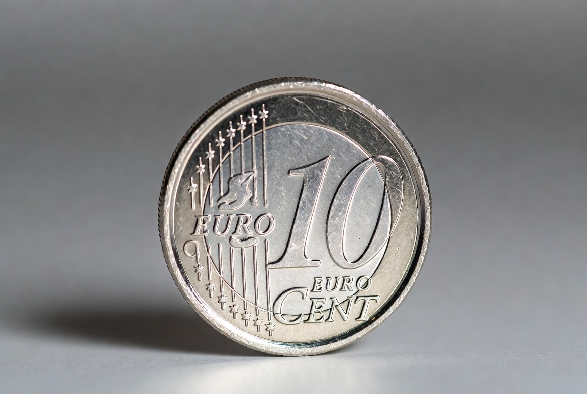 10 cent, 12 stars, coin, currency, euro coin, euro currency, euro symbol, european money, gray background, metallic coin, money, obverse side, reeded edge, silver coin, euro cent