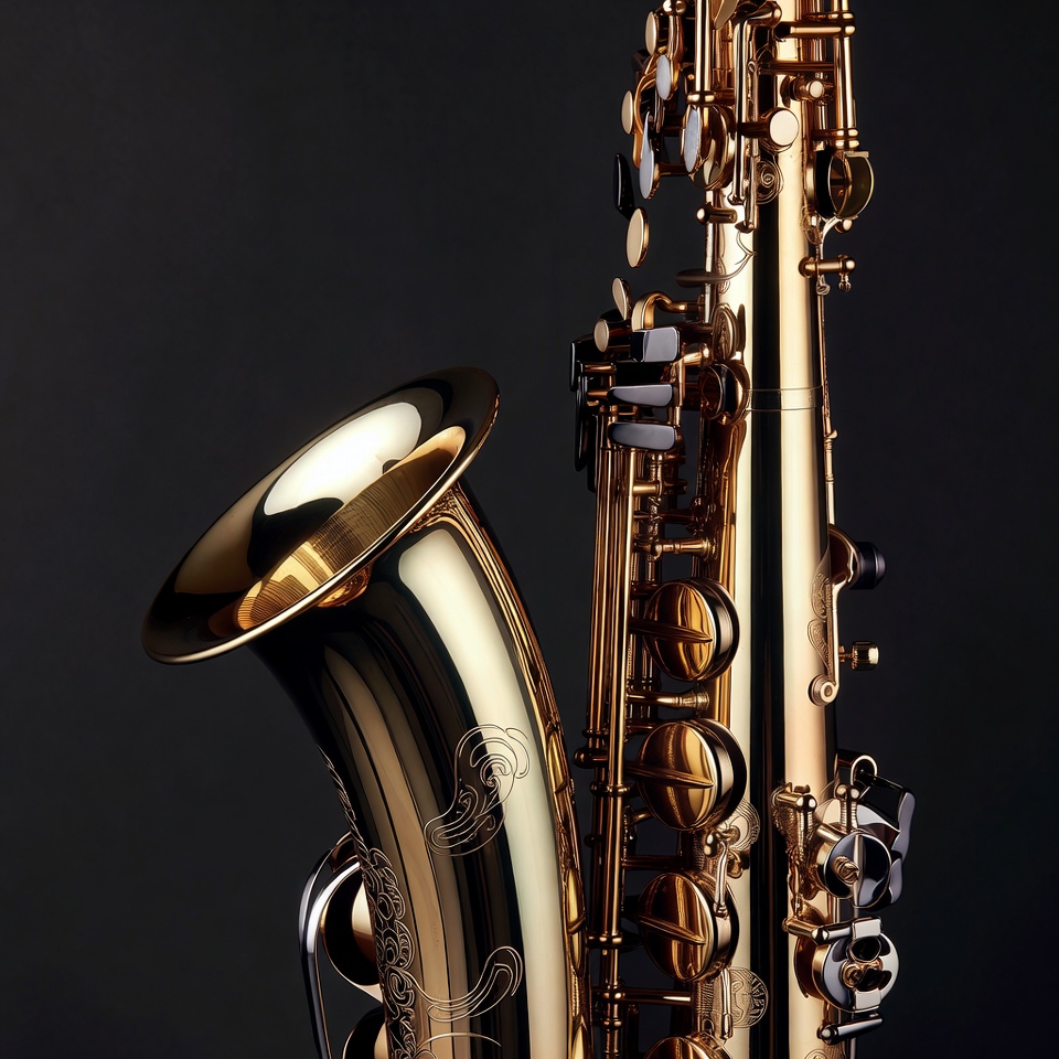 Shiny Gold Saxophone on Black Background