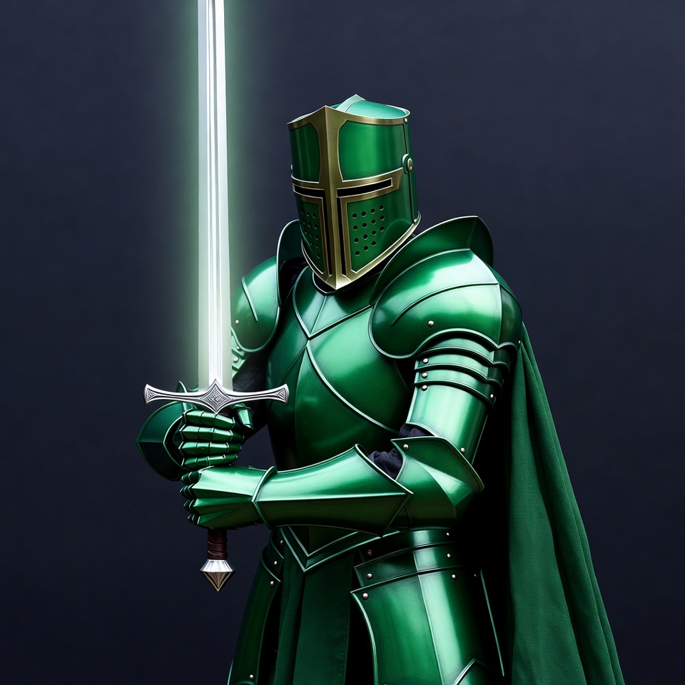 Green Knight Holding Glowing Sword