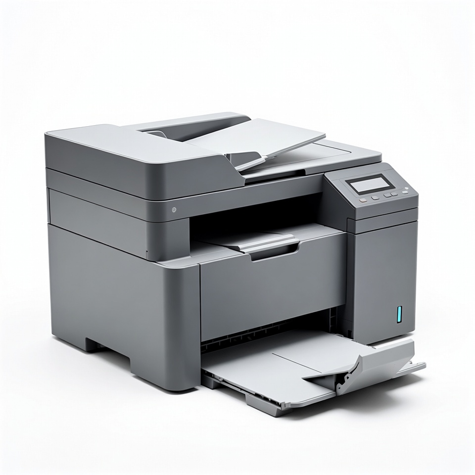 all-in-one printer, control panel, copy machine, digital display, equipment, fax machine, gray printer, inkjet printer, isolated background, laser printer, machine, multifunction printer, office printer, output tray, paper tray, printing device, scanner, technology, white background, printer