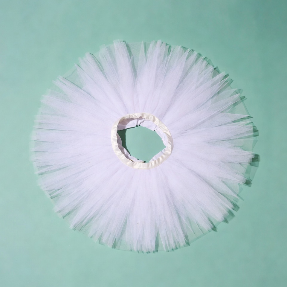 ballet skirt, circular skirt, clothing, dancewear, elastic waistband, fashion, fluffy skirt, green background, isolated, layered tulle, tulle skirt, tutu, white, white tutu, tutu skirt