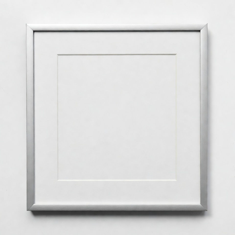 art frame, blank frame, clean frame, display frame, empty artwork, empty frame, empty picture, frame isolated, gallery frame, isolated frame, matboard, modern frame, photo frame, picture mat, poster frame, silver border, silver frame, silver metal, simple frame, square frame, white background, white mat, picture frame
