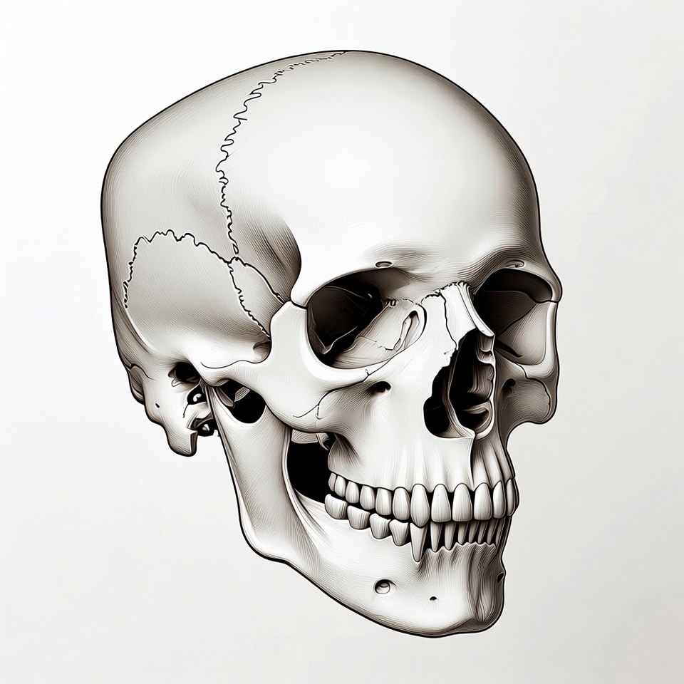 Realistic Human Skull Illustration
