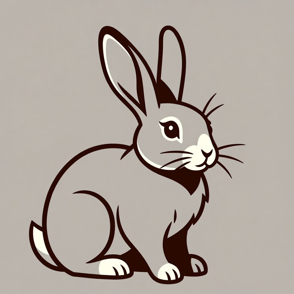 animal, big eyes, cartoon bunny, clipart, cute rabbit, floppy ears, fluffy rabbit, gray bunny, illustration, isolated background, line art, rabbit, sitting bunny, white paws, bunny