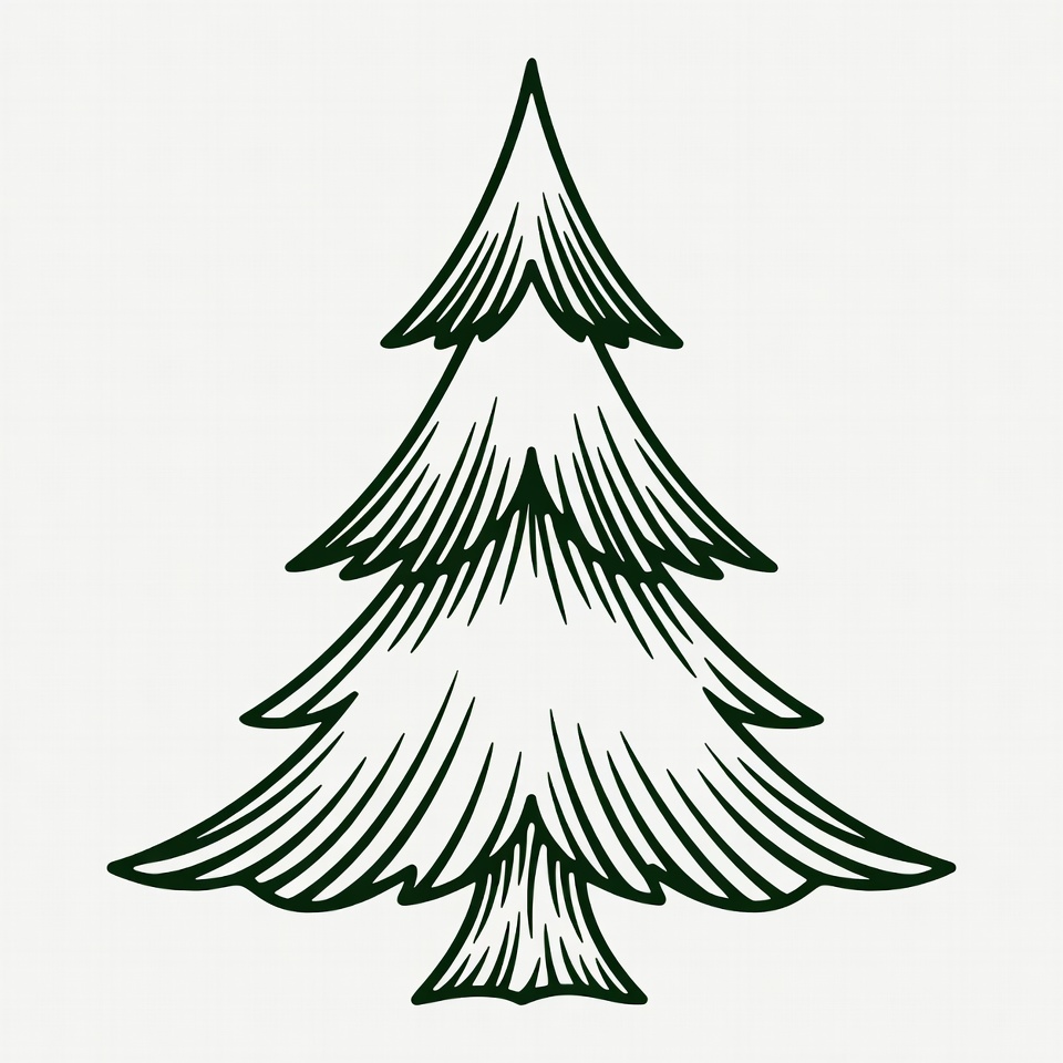 Christmas illustration, clipart, coniferous tree, drawing, evergreen tree, festive tree, fir tree, green tree, hand drawn tree, holiday tree, isolated background, line art, pine tree, sketch, tree illustration, vector tree, Christmas tree