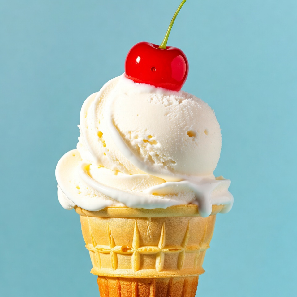 Vanilla Ice Cream Cone with Cherry