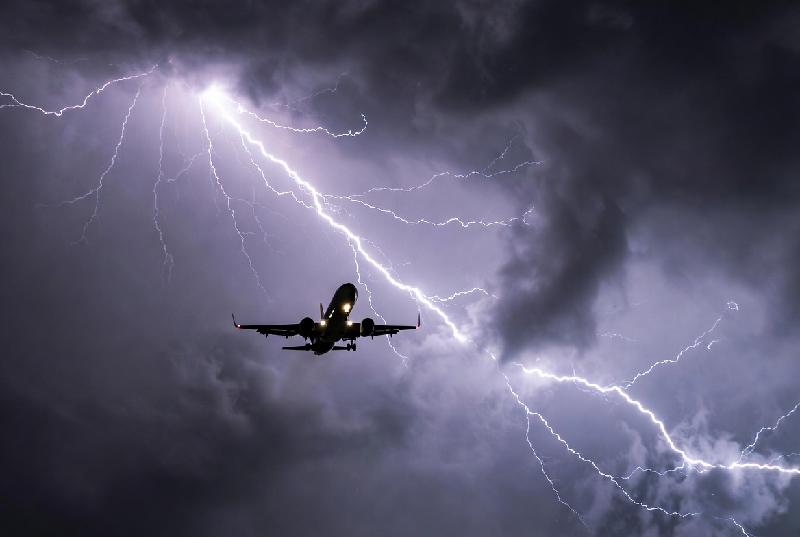 aircraft, aviation, bolt, clouds, commercial jet, dark clouds, dramatic sky, flying, jet, lightning, night sky, plane, sky, storm, stormy weather, thunder, thunderclouds, thunderstorm, weather, airplane