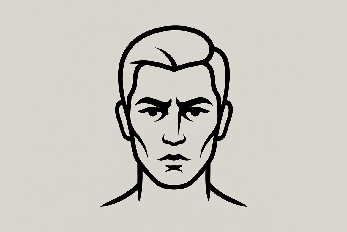 avatar, black lines, combed hair, drawing, emotions, face, frown, furrowed brows, graphic, headshot, icon, illustration, intense gaze, isolated background, line art, male, man, minimalist, portrait, profile view, serious face, short hair, silhouette style, stern expression, vector, angry man