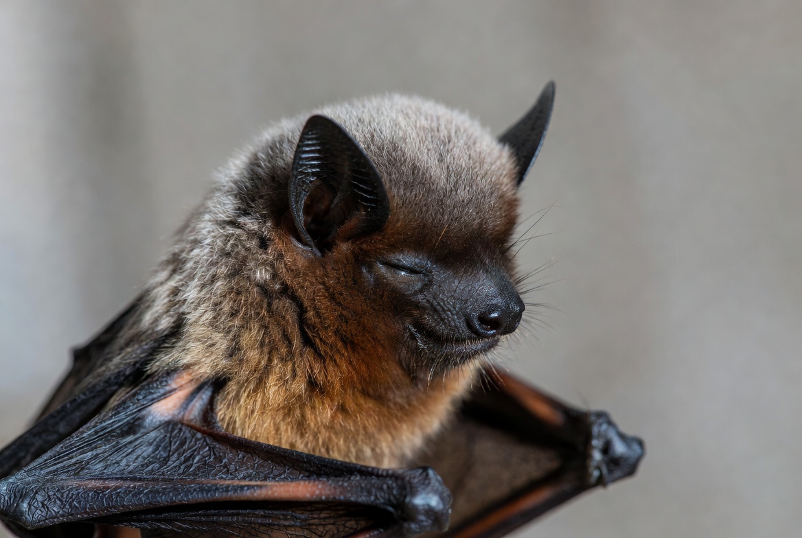 animal, brown bat, close-up, closed eyes, furry bat, isolated background, large ears, mammal, whiskers, wildlife, wings, bat