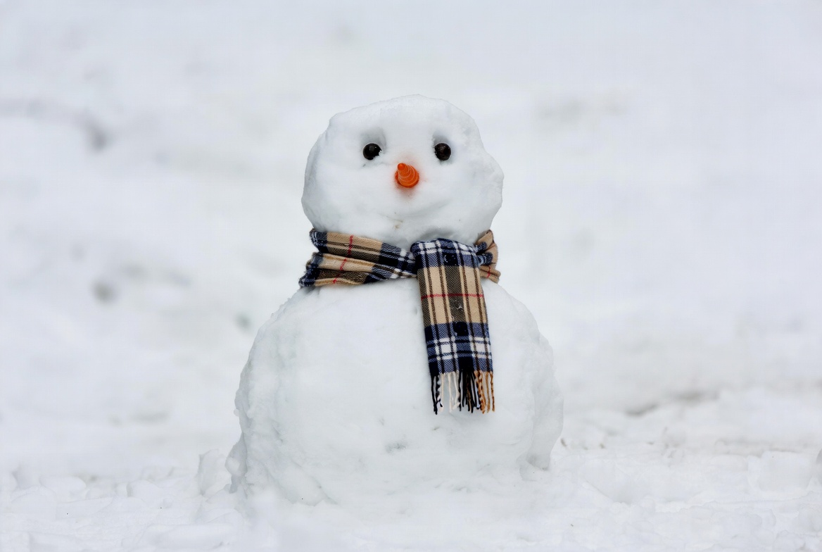 Christmas, black eyes, carrot nose, cold weather, cute snowman, frosty, holiday, isolated background, plaid scarf, scarf, snow, snow figure, white snow, winter, snowman