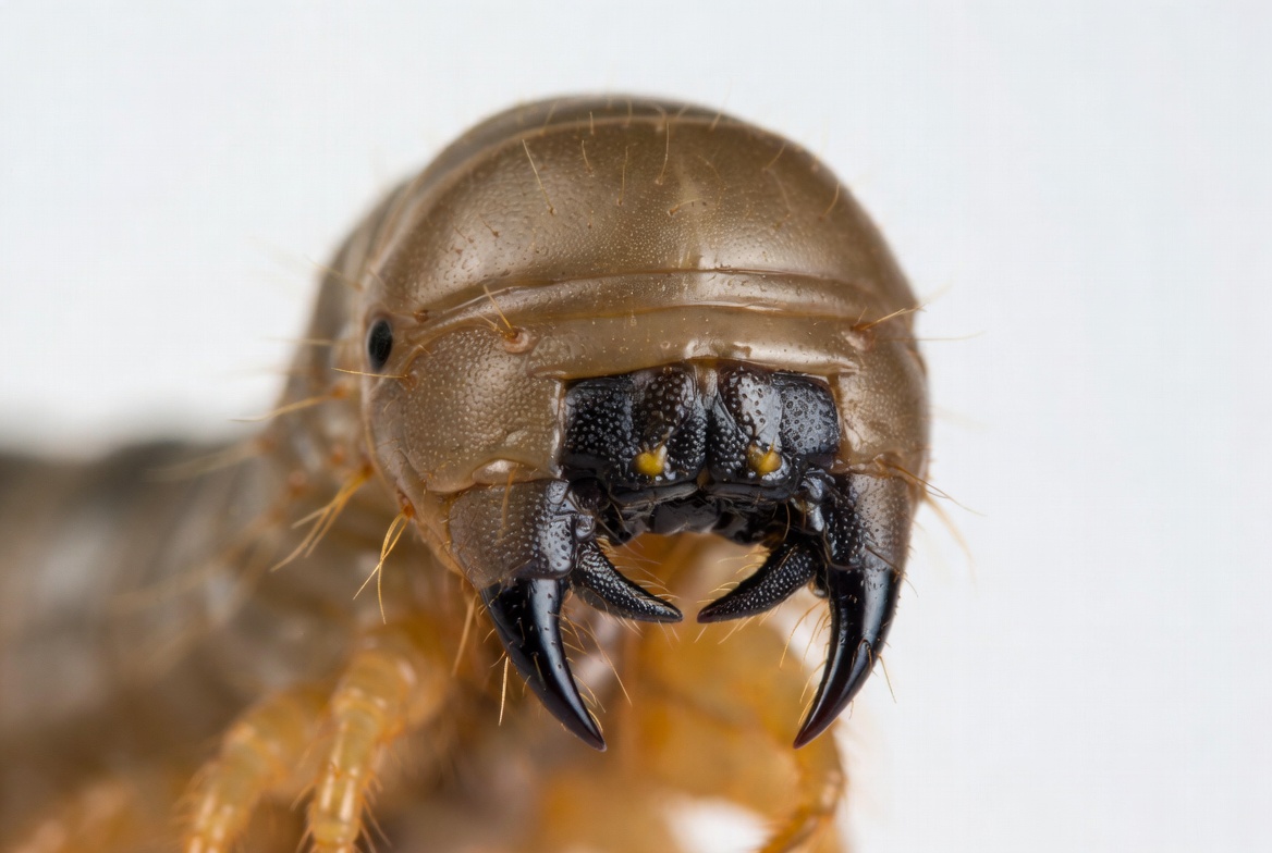 Close-up of brown centipede head