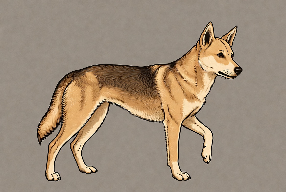 Japanese dog, animal, canine, clipart, curled tail, digital art, dog, fox-like dog, illustration, isolated background, perked ears, pet, side view, tan dog, walking dog, white markings, Shiba Inu