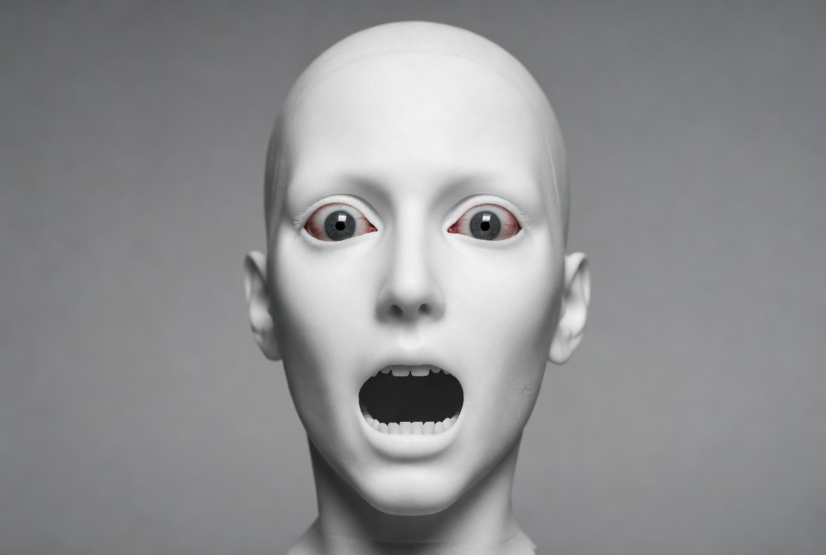 White mannequin head screaming