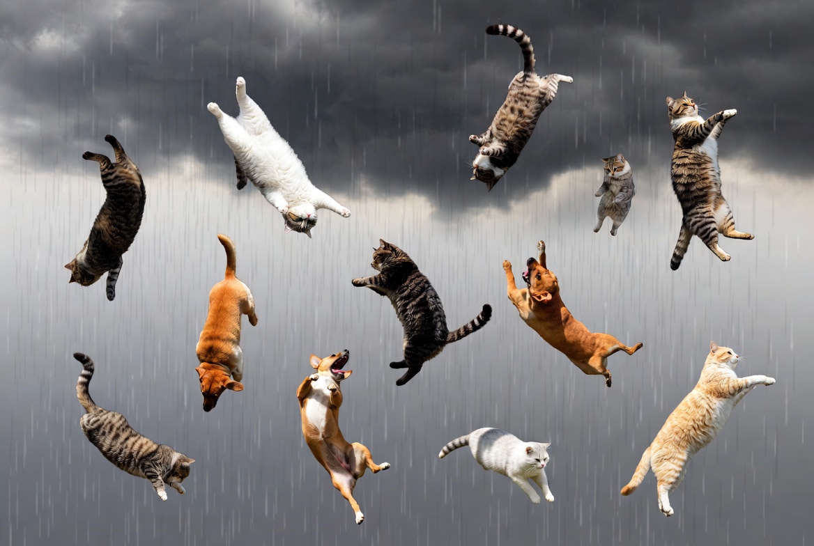 Cats and Dogs Falling in Rain
