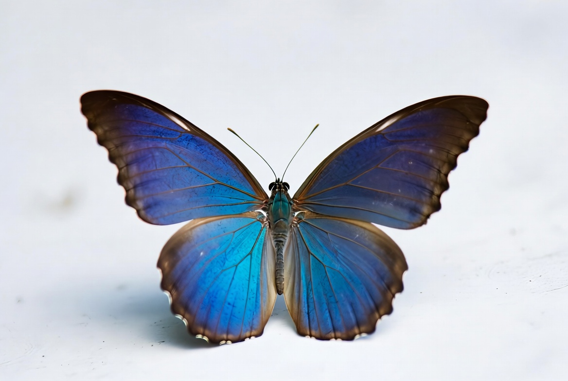 Morpho butterfly, beautiful butterfly, brown edges, butterfly wings, insect, iridescent blue, isolated background, macro photography, nature, tropical butterfly, white background, wildlife, wings spread, blue butterfly