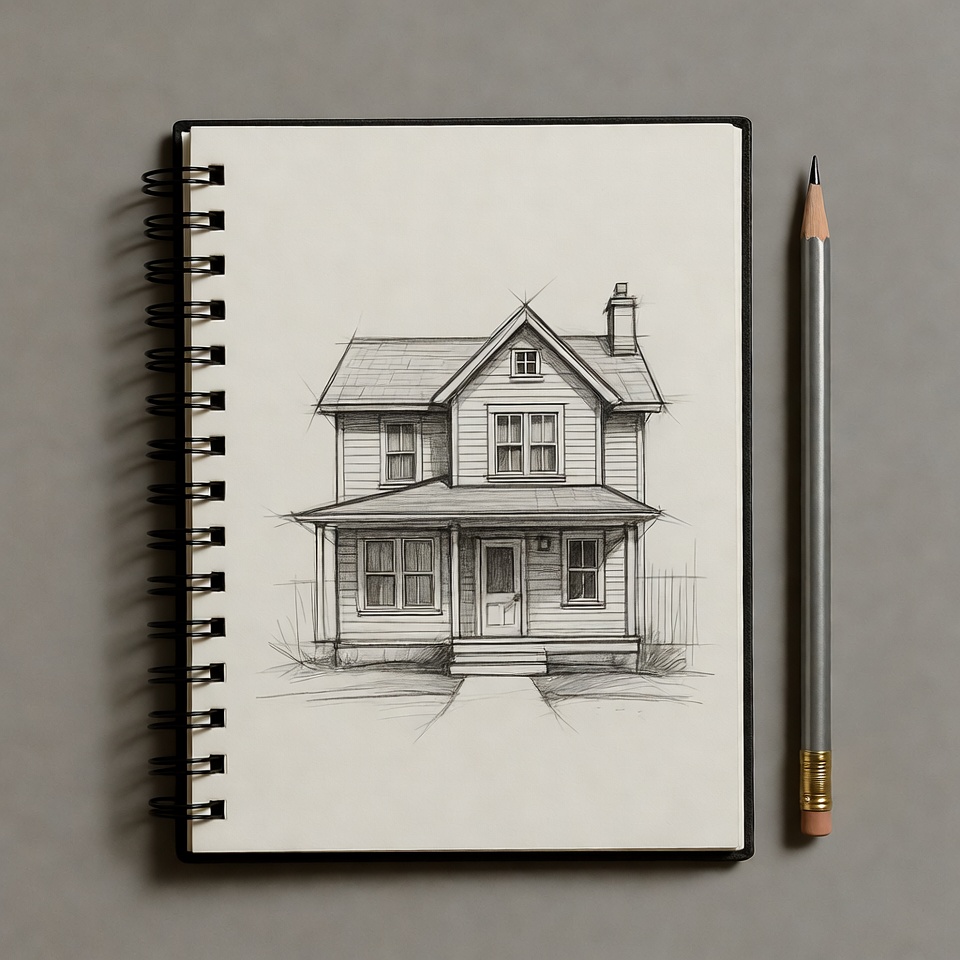 Pencil Sketch of House in Notebook