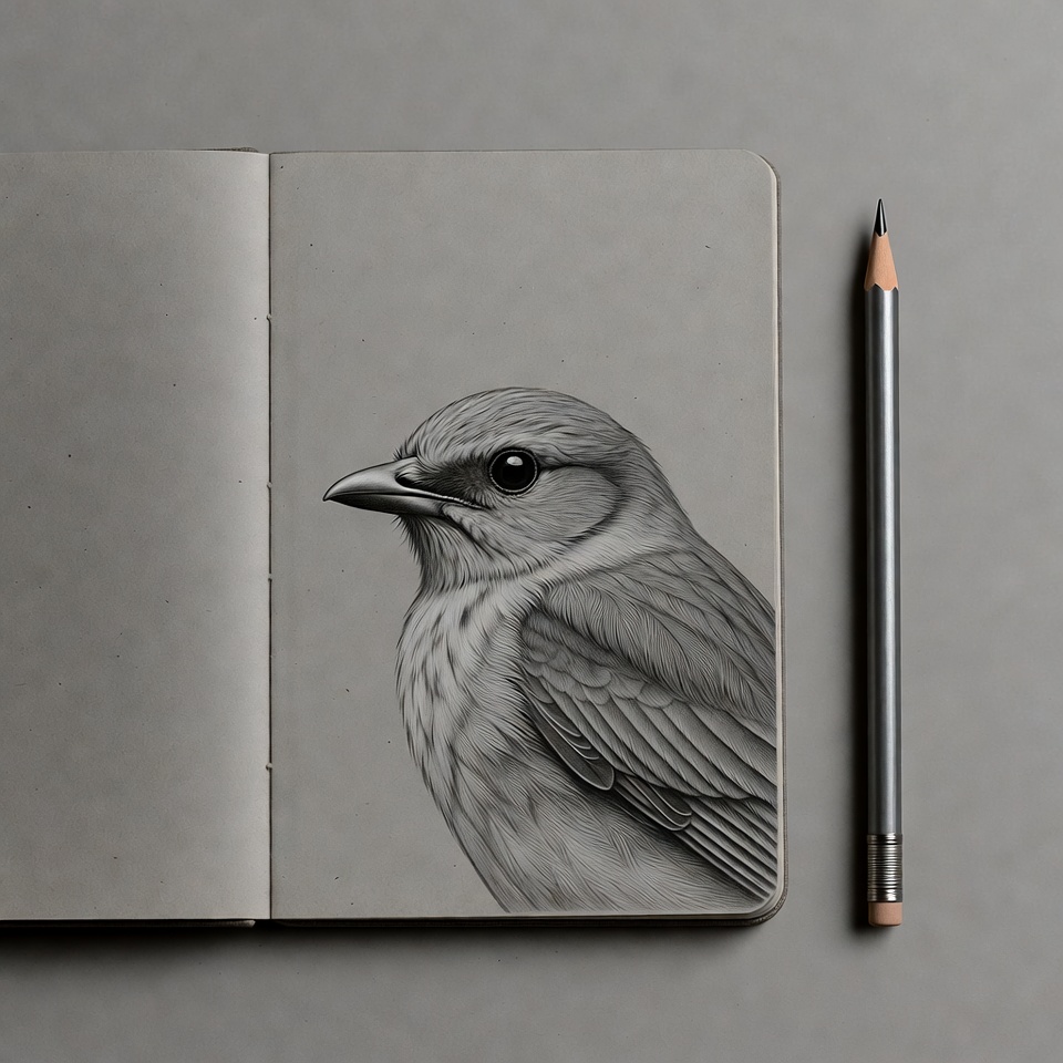 Pencil Sketch of Sparrow in Open Sketchbook