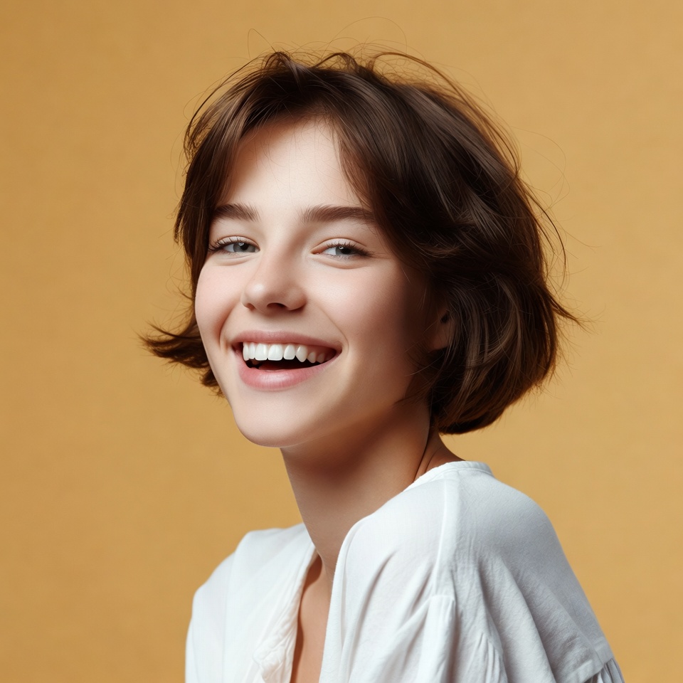 Smiling woman with bob haircut