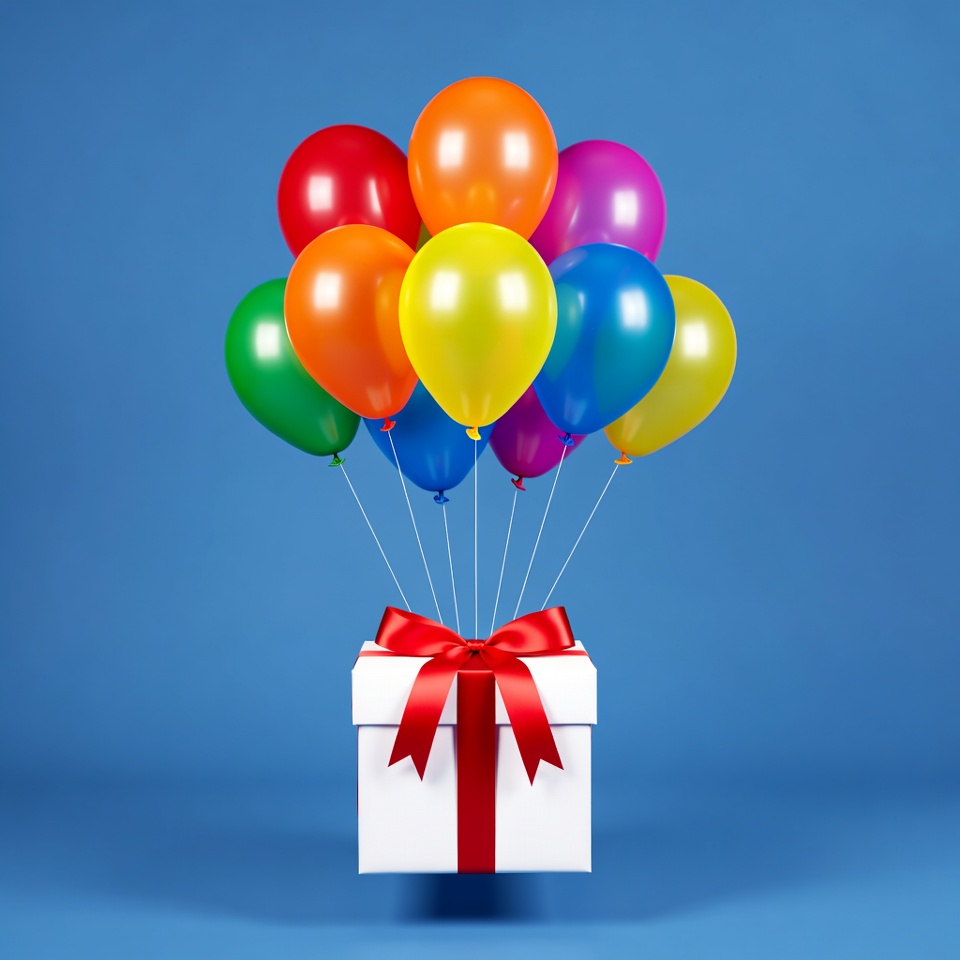 Colorful Balloons on Gift Box