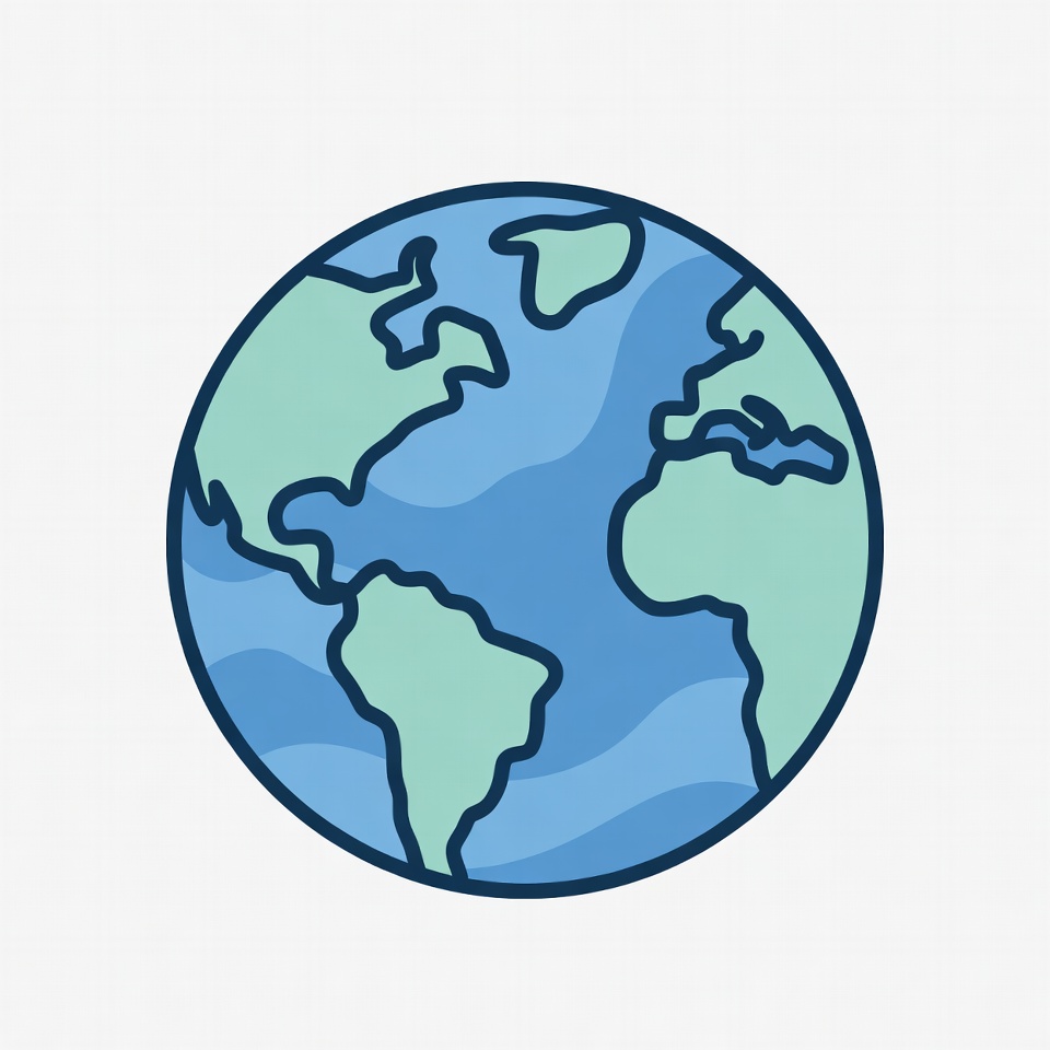 Africa, Asia, Europe, North America, South America, blue, clipart, continents, flat design, globe, green, illustration, isolated background, line art, oceans, outline, planet, simple, vector, world, Earth