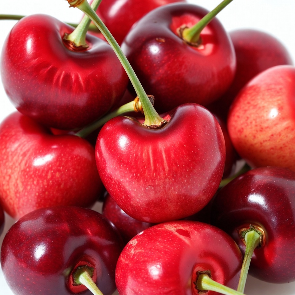 cherry bunch, cherry cluster, cherry fruit, cherry pile, delicious cherries, fresh cherries, fruit, fruit isolated, glossy cherries, green stems, red cherries, ripe cherries, sweet cherries, white background, cherries