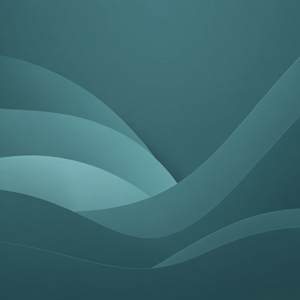 A minimalist abstract background features overlapping smooth teal waves in varying shades. The design uses fluid curved shapes on a solid dark teal base. It creates a modern, seamless pattern ideal for digital use.