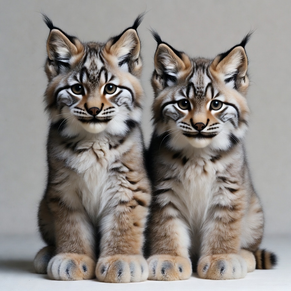 Two Cute Lynx Kittens Sitting