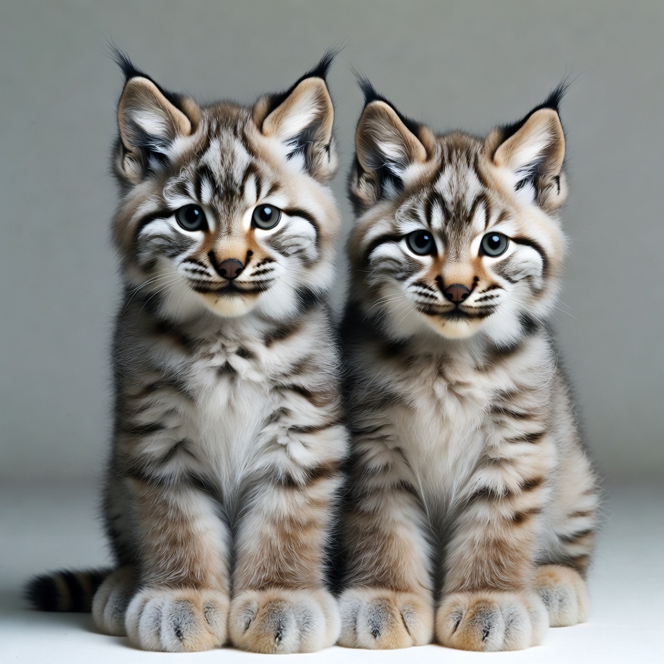 Two Cute Lynx Kittens Sitting