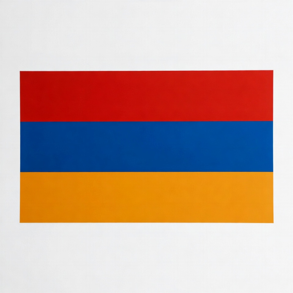 The flag of Armenia features three horizontal stripes. The top stripe is red, the middle is blue, and the bottom is orange. It is displayed against a plain white background.