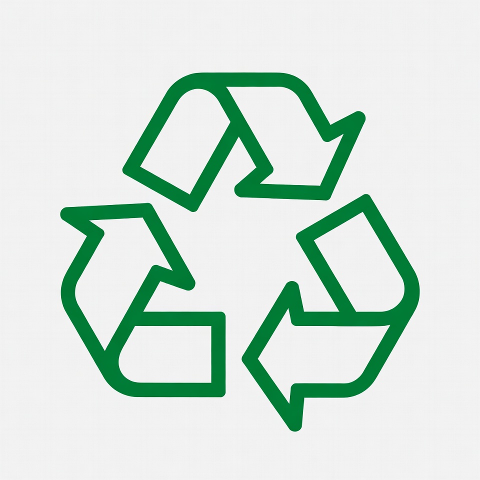 A green recycling symbol icon features three curved arrows chasing each other in a triangular formation. The design is bold and outlined on a white background. It is a simple vector clipart illustration.