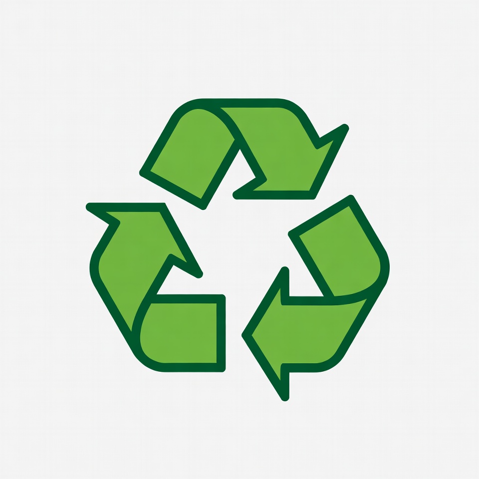A simple green recycling symbol icon features three curved arrows chasing each other in a triangular formation. The design uses bold outlines and solid green fill on a white background. It is a clean vector illustration suitable for environmental themes.