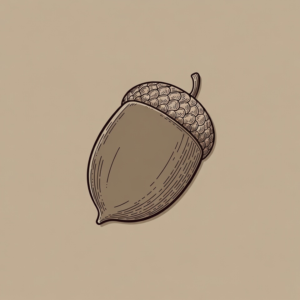 Illustrated Acorn on Beige Background