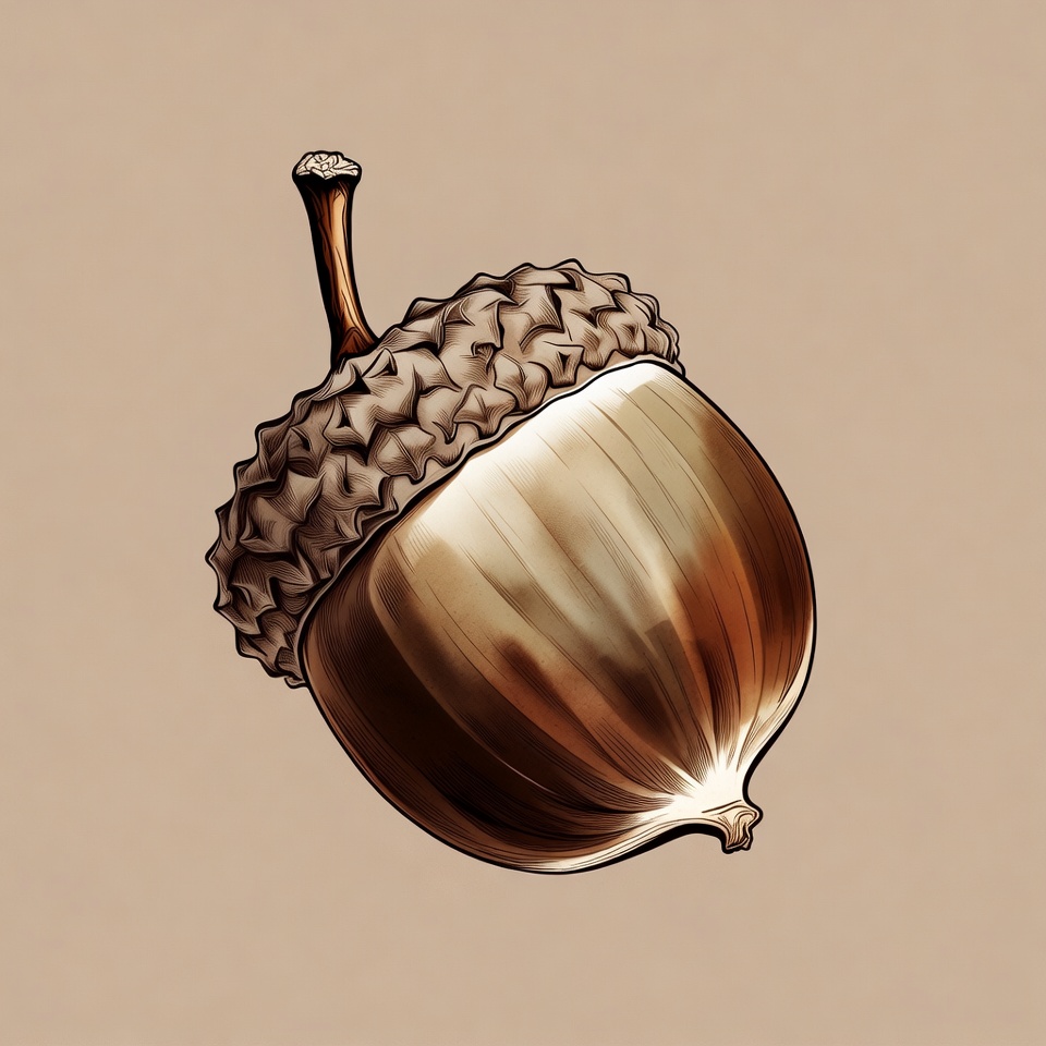 Illustrated Acorn on Tan Background