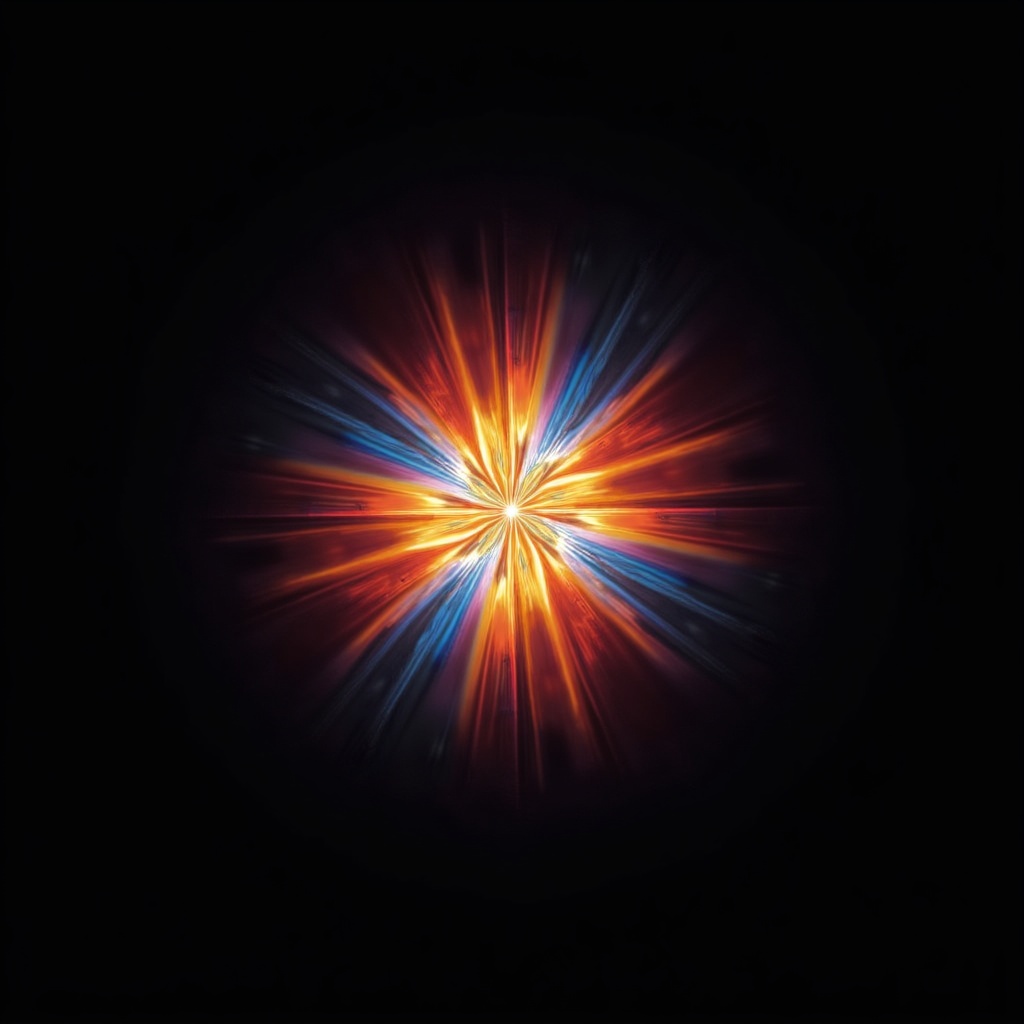 abstract light, black background, blue beams, colorful explosion, dynamic rays, energy burst, explosion, fiery burst, glow, isolated background, light burst, light rays, neon star, orange rays, radial light, radiant, red light, vibrant glow, yellow center, starburst