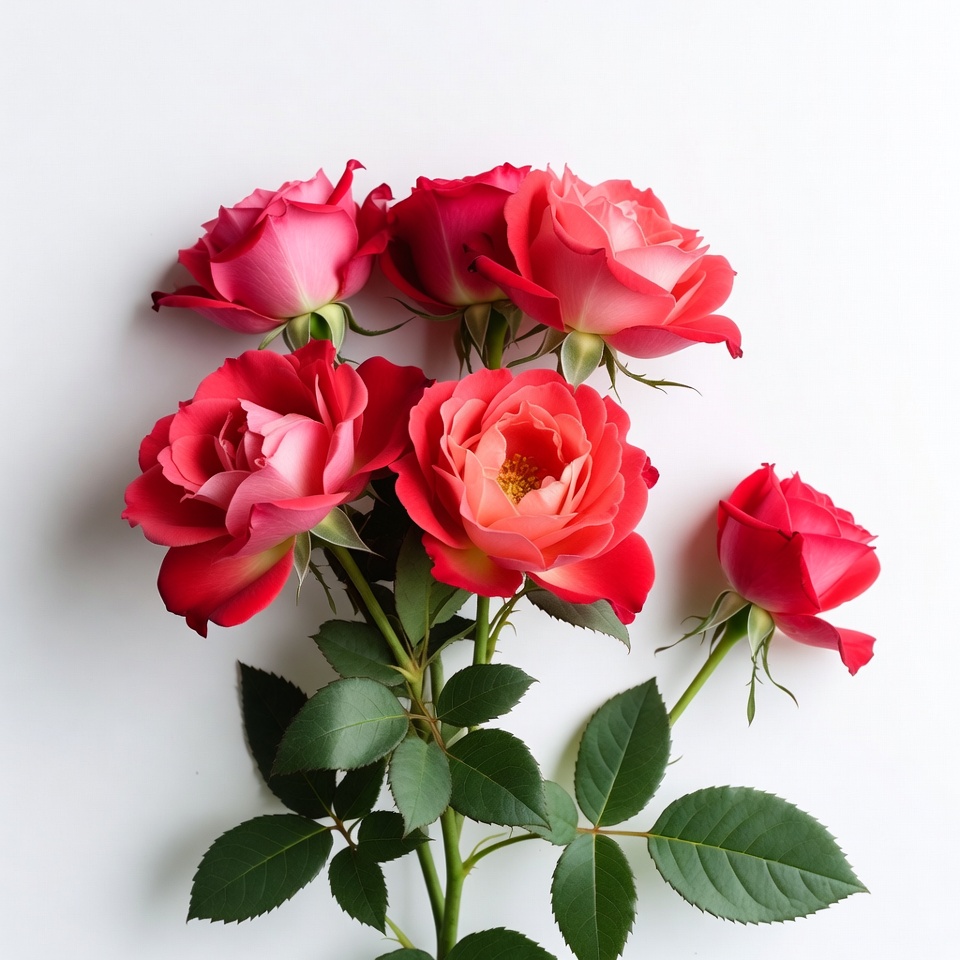 blooming roses, bouquet, floral, flower arrangement, flowers, fresh flowers, garden roses, green leaves, green stems, isolated background, rose cluster, rose petals, roses, white background, pink roses