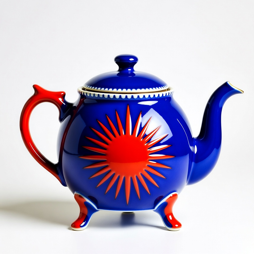Blue Teapot with Red Sun Design